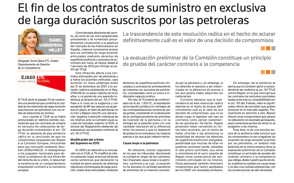 El fin de los contratos de suministro en exclusiva de larga duración suscritos por las petroleras. – Enero 2018