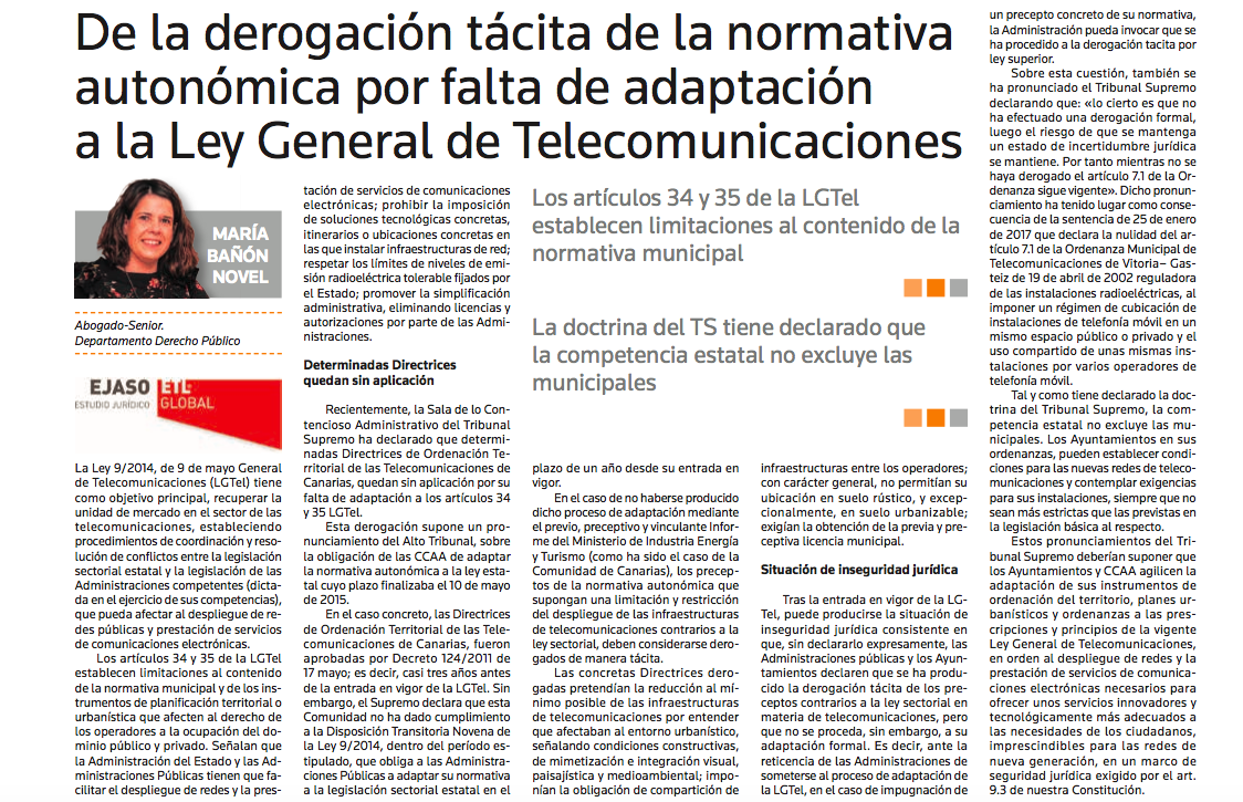 De la derogación tácita de la normativa autonómica por falta de adaptación a la Ley General de Telecomunicaciones – Julio 2017